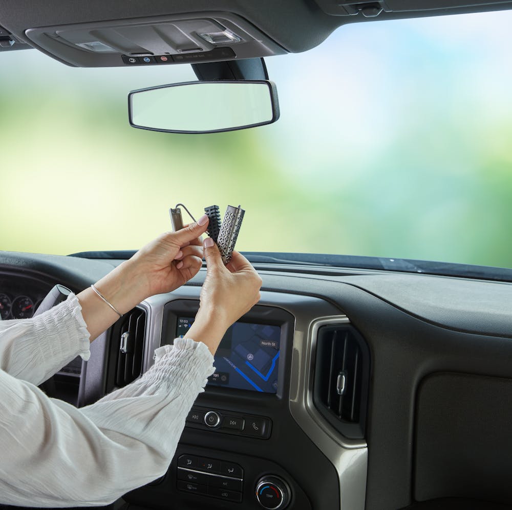 Introducing car fragrance that fits your style. Sleek designs with premium finishes offer a beautiful way to make your journey your own. Universal refill works in all Sidekick® designs — Visor Clip, Vent Clip, or Pendant — and fills your car with a welcoming scent for up to 30 days. Contains two Sidekick® Fragrance Refills.